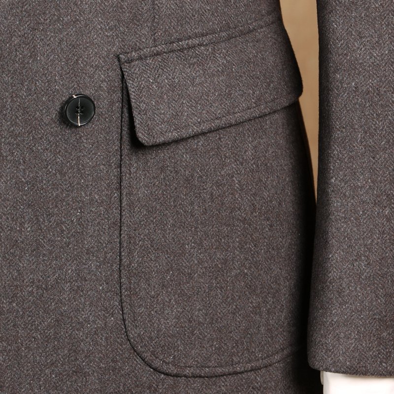 Herringbone Woolen Slim Fit Men’s Mid Length Double Breasted Coat