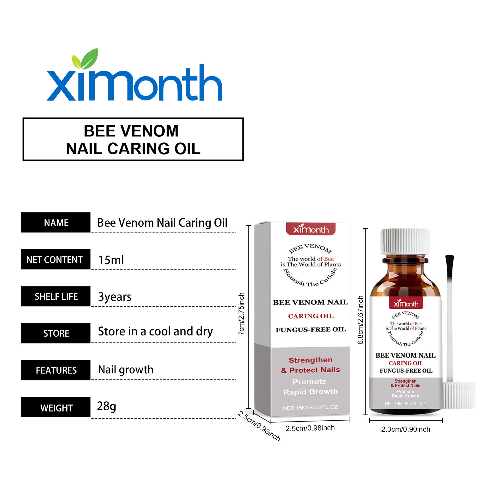 Our nail lotion contains glycerin, bee venom and maltoside. It is effective against fragility and cracks and is designed for daily maintenance of onychomycosis. Helps maintain the thickness and strength of the nails and promotes blood circulation to the nail bed. Its application is simple: wash and dry your nails, apply an even amount of serum to your nails, and gently massage your nails to promote absorption. Stimulate the nail root and substrate to make nails grow faster and healthier.
